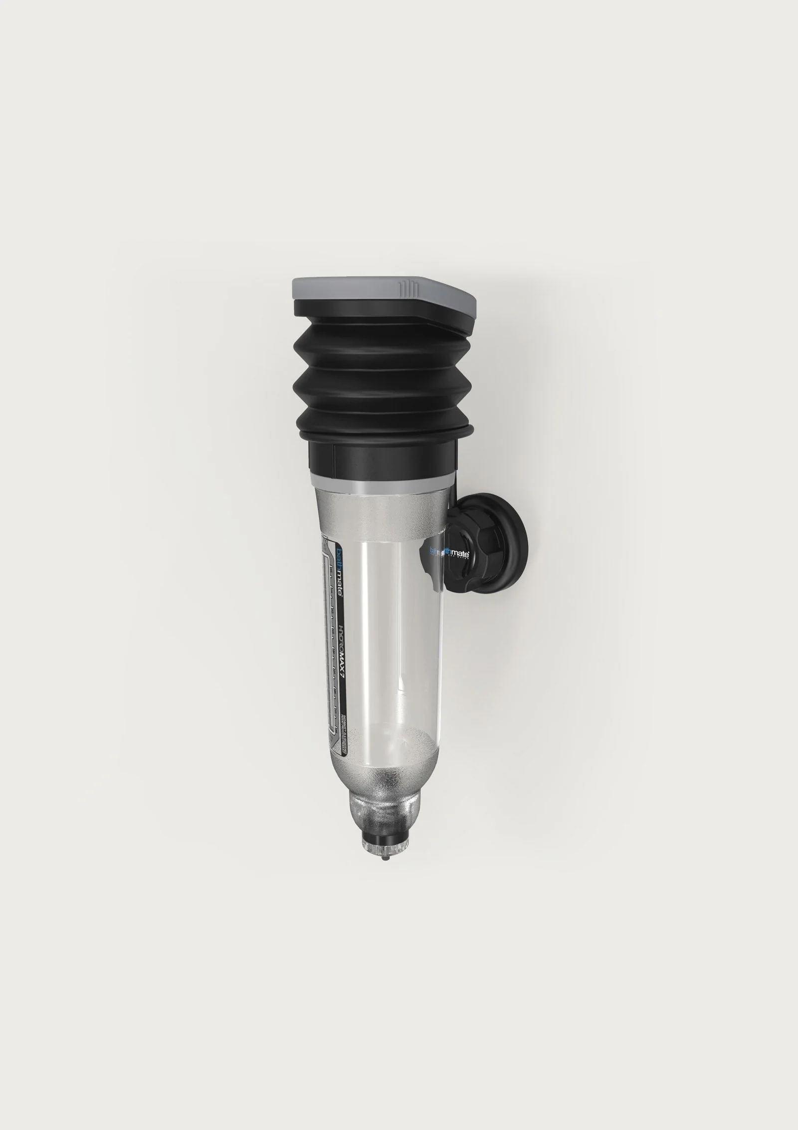 Designed to keep your pump in top condition, the Pump Holder also keeps your pump at arms-reach and ready for action. It attaches to a smooth surface easily with a simple twist of the lock and will hold our Bathmate pumps (even full of water) safely up on the wall. Pop your pump back on the holder between pumping sessions to let it completely drain of water. Draining the water out of the helps to keep the valve clean and hygienic. Not a private bathroom? A quick twist of the lock and the holder will remove from the wall mark-free to stay completely discreet. Be safe in the knowledge that the holder can comfortably hold up to 4kg.